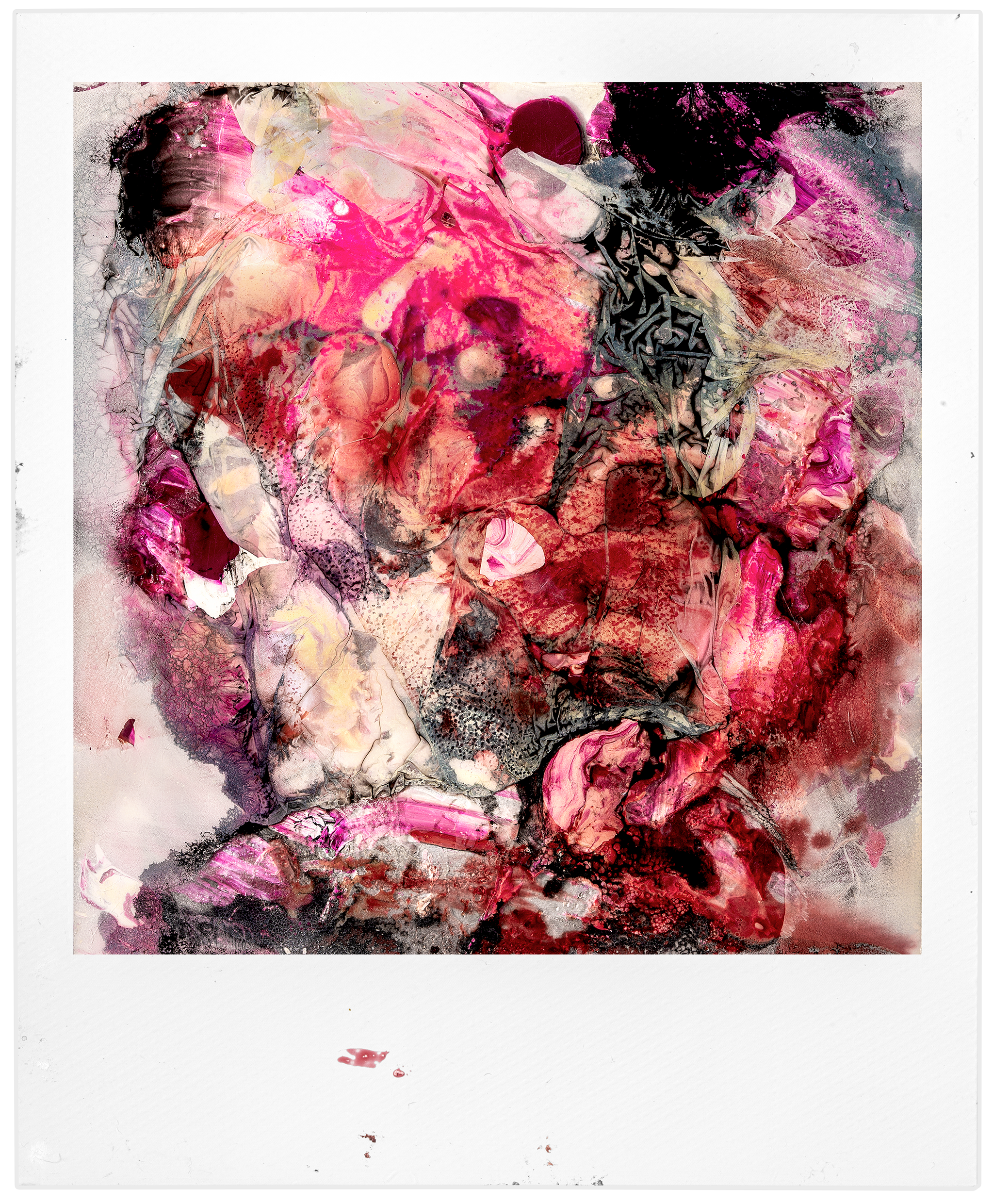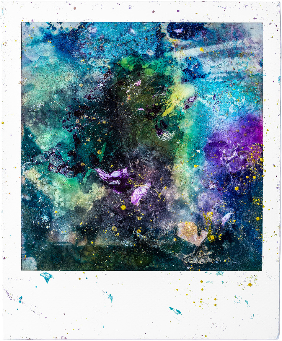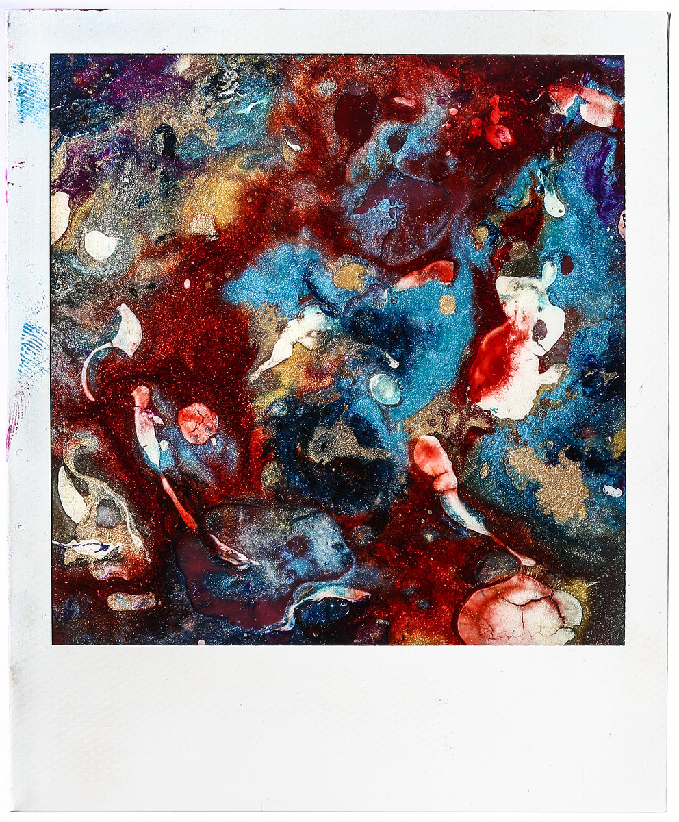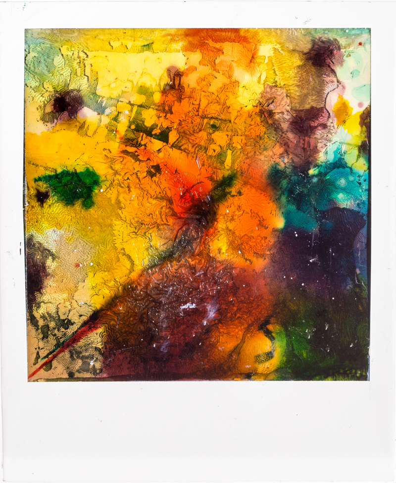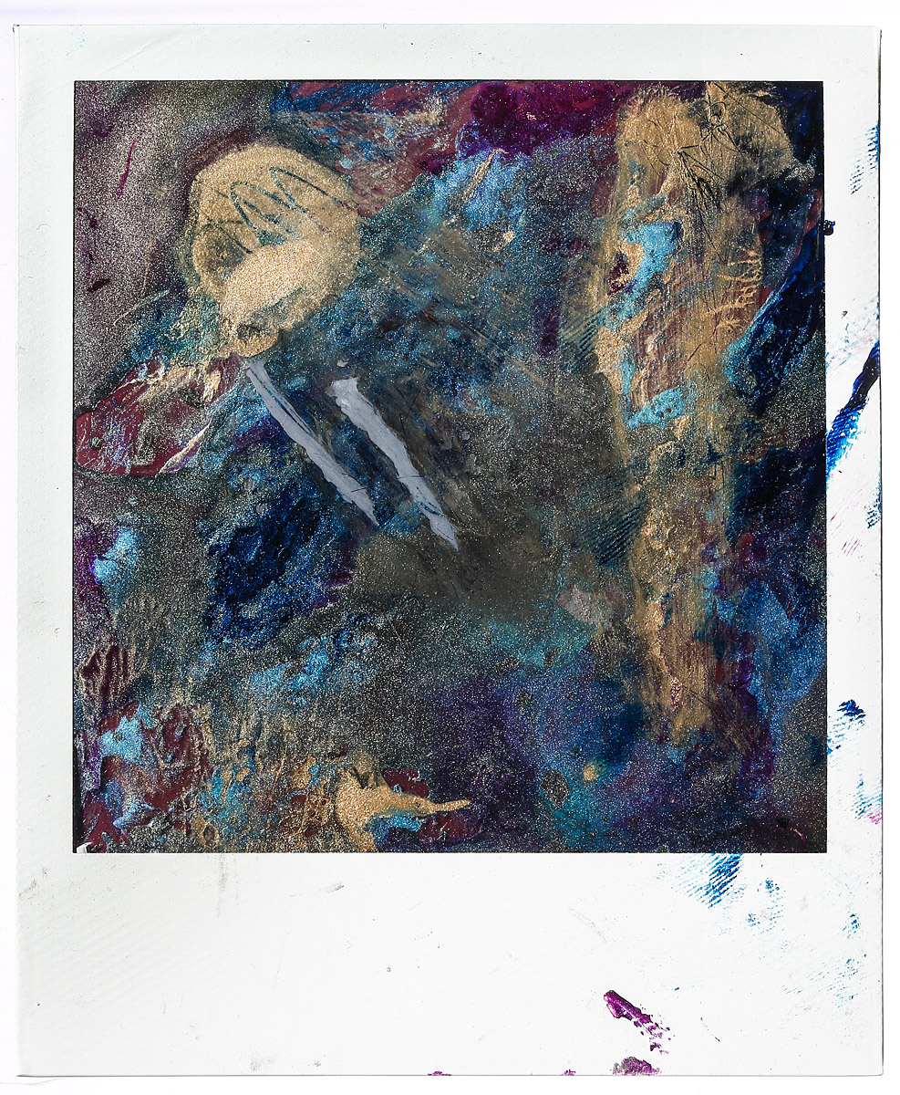 « The motion collides with the painstaking and abstract process. A new light, a cluster of colors, a bruise. The tones amplify and eat up everything. Photography is no more, one has to accept change, transformation, metamorphosis. »