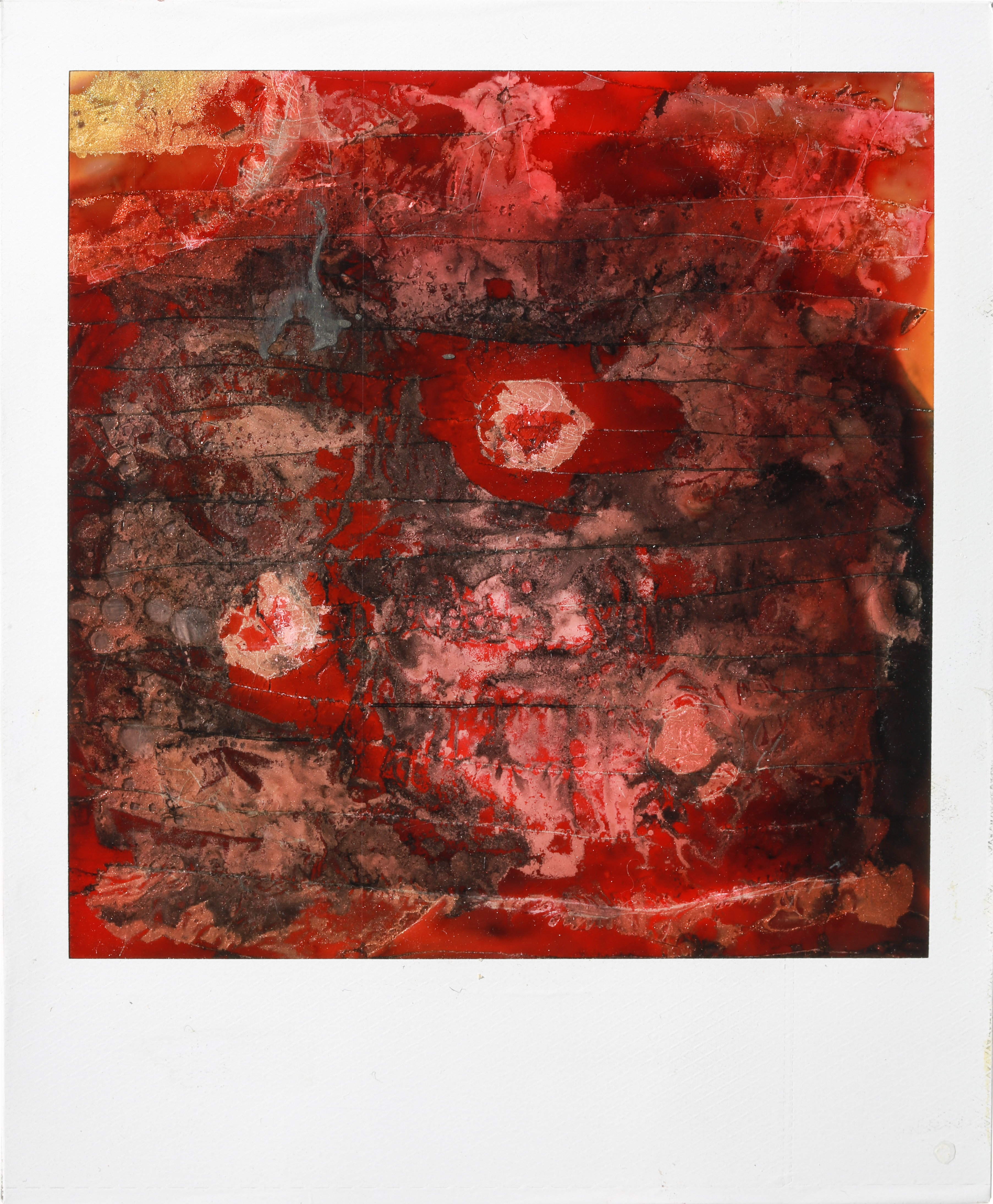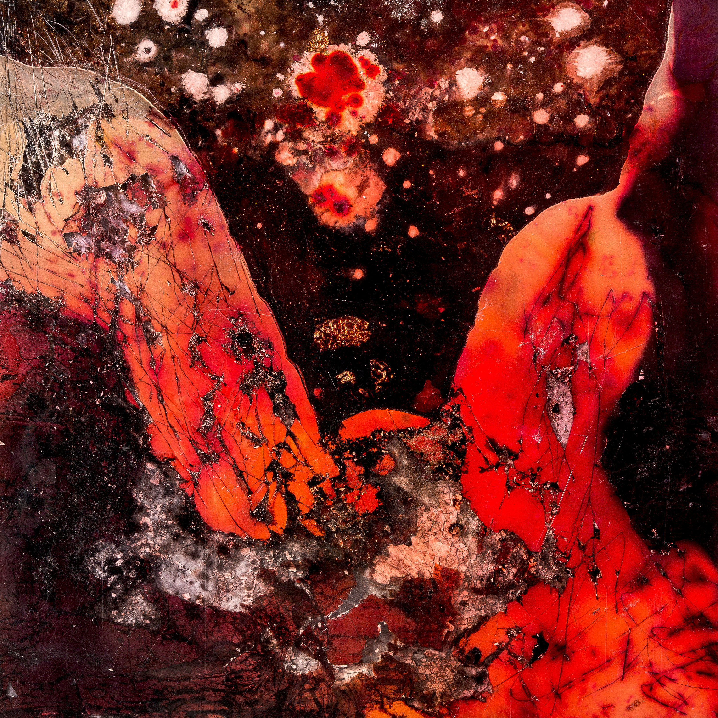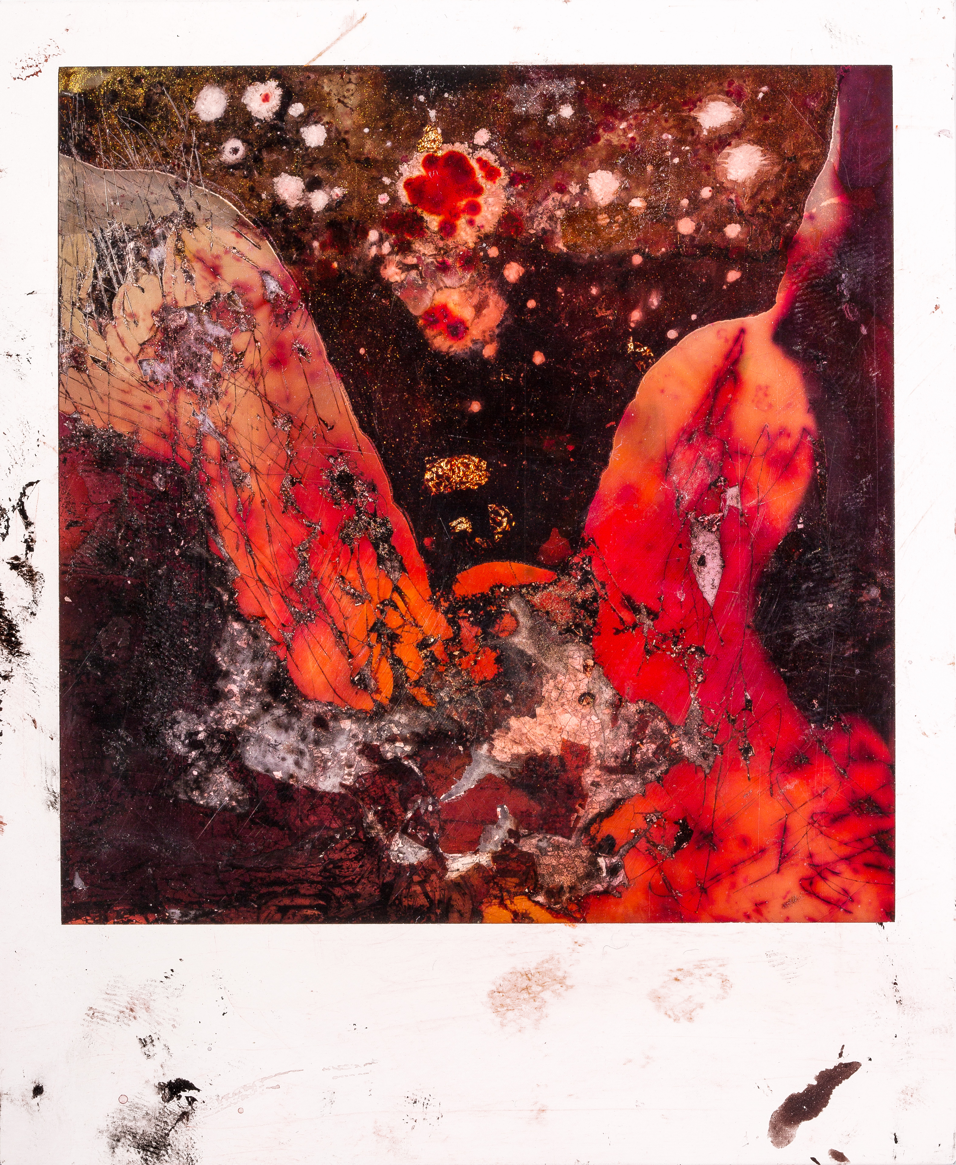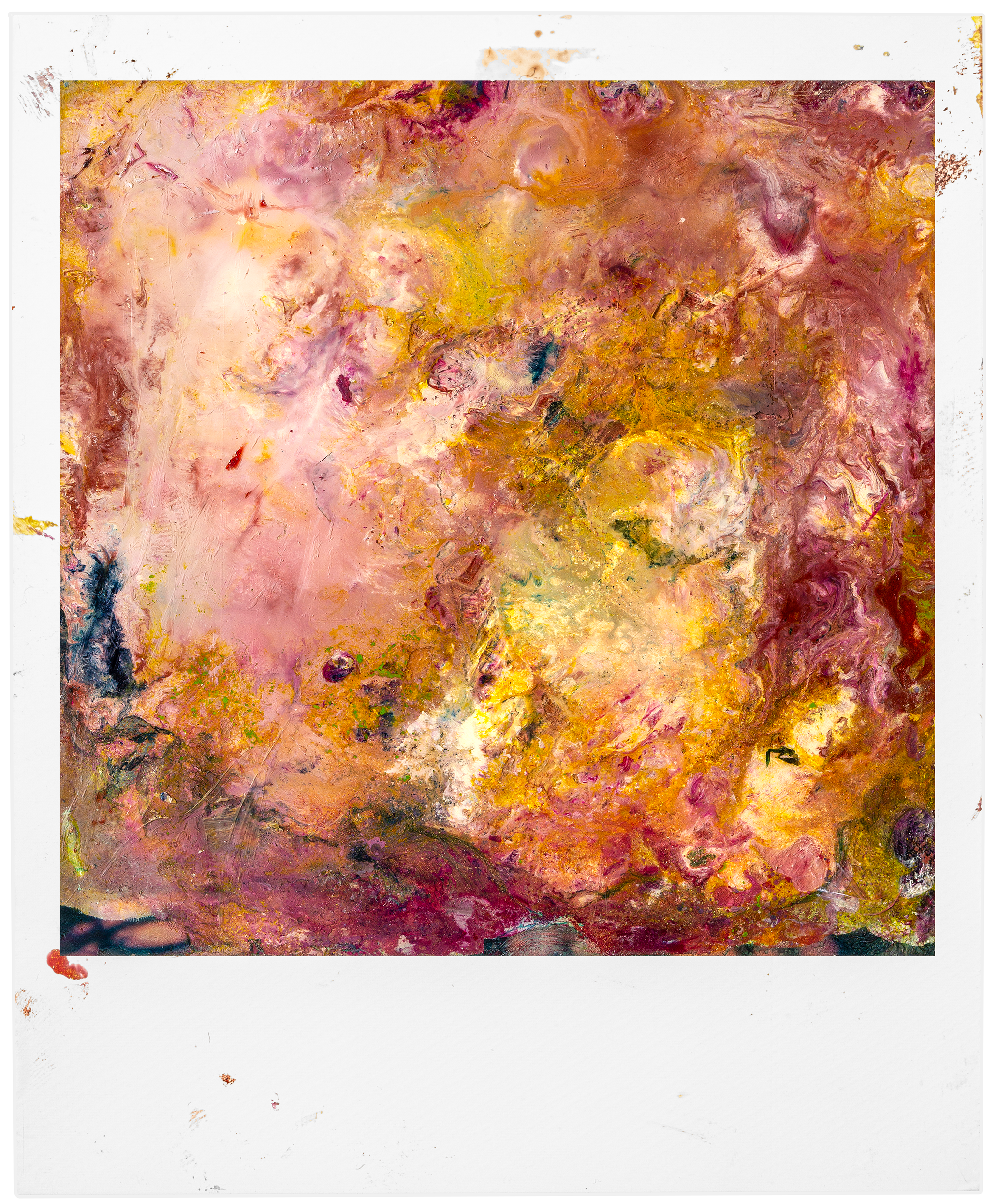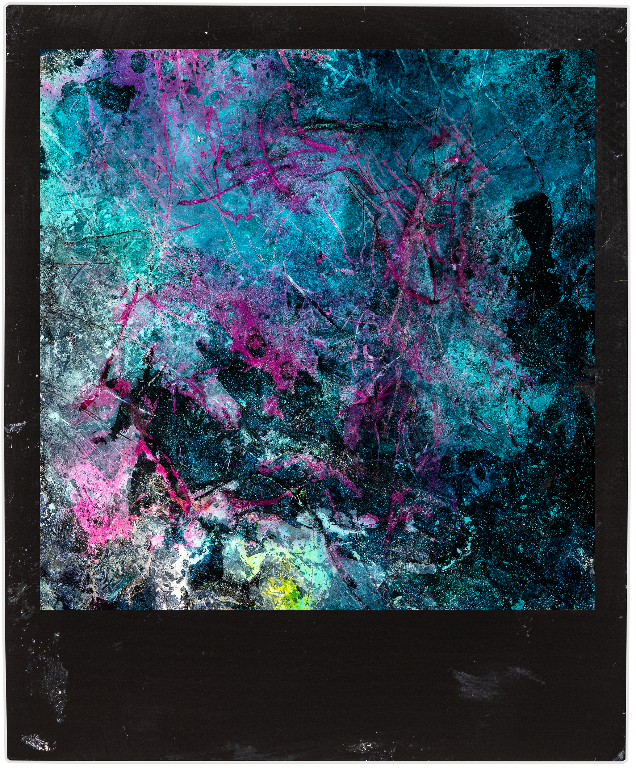 « The motion collides with the painstaking and abstract process. A new light, a cluster of colors, a bruise. The tones amplify and eat up everything. Photography is no more, one has to accept change, transformation, metamorphosis. »
